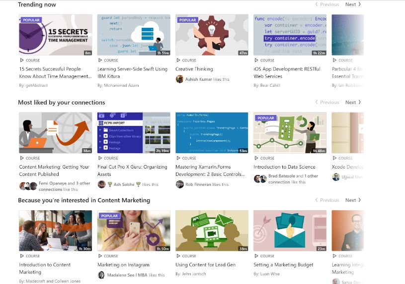 - Popular on LinkedIn Learning: Besides, trending courses, the courses that are popular LinkedIn-wide are recommended under this category.